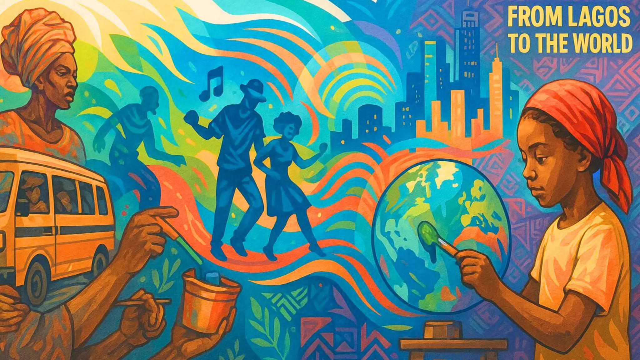 The progression becomes a powerful visual metaphor: what begins in Lagos does not stay in Lagos. Its ideas, people, sounds, and innovations travel far beyond its borders, shaping global culture and inspiring new possibilities. The child at the mural’s edge represents a rising generation—imaginative, bold, and ready to shape the world with creativity rooted in place and identity.